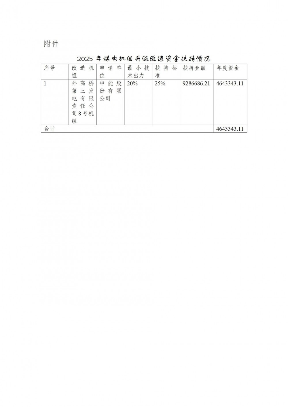 附件:2025年煤电机组升级改造资金扶持情况